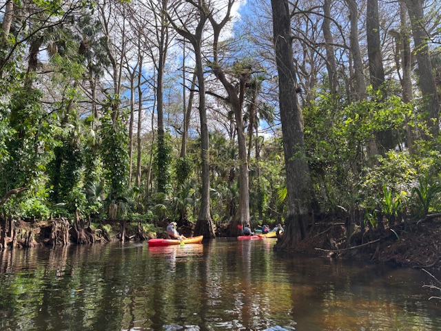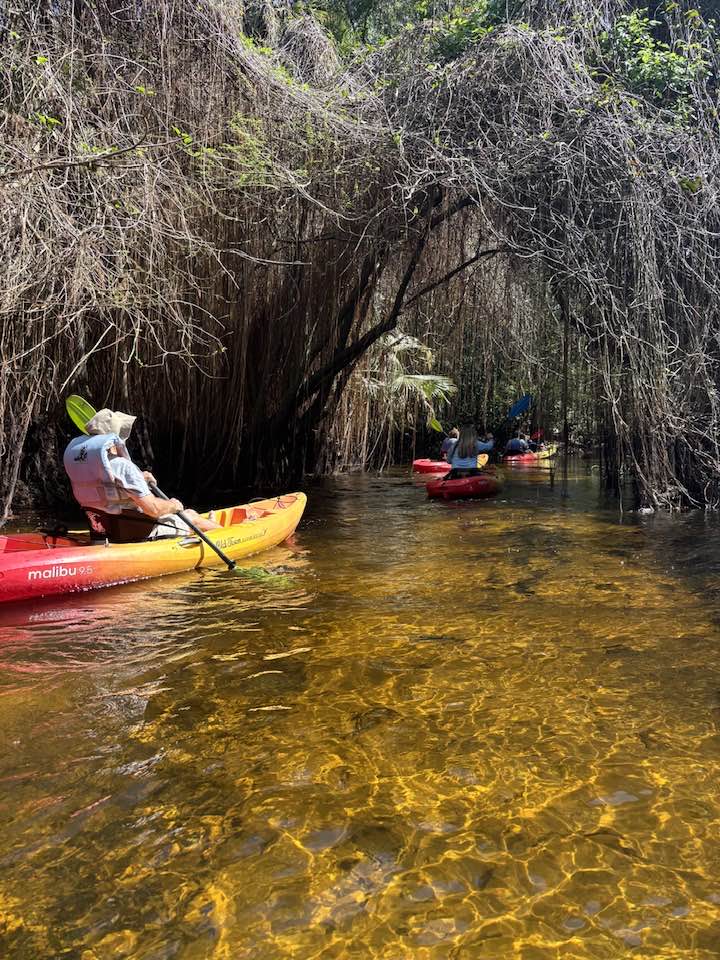 Näkymät ovat uskomattomat. Puut kaartuvat joen ylle, naavaa (Spanish moss) roikkuu puista, auringon valo siivilöityy lehvistön läpi. Tunnelma on kuin esihistoriallisessa metsässä.