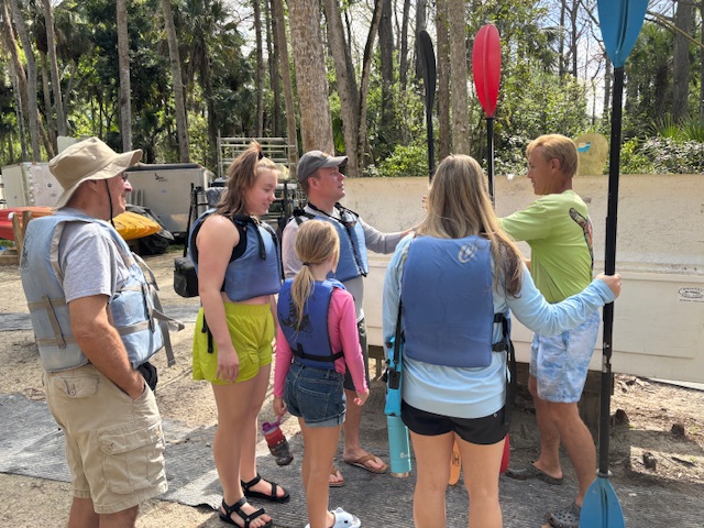 Joen mutkassa oli ruuhkaa, olihan mitä kaunein lauantai keskellä vilkkainta Floridan talvisesonkia. Tämän ruuhkan aiheuttivat söpöläiset kelta-ruskearaidalliset alligaattorinpoikaset, jotka paistattelivat päivää laudanpalasen päällä, äiti-alligaattorin pitäessä tilannetta silmällä kasvillisuuden suojista. Kilpikonnat paistattelivat päivää eivätkä melojista välittäneet.