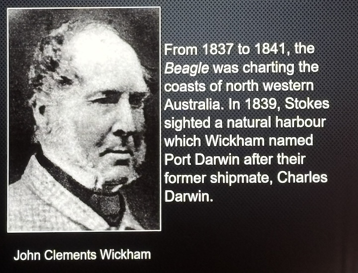 Charles Darwin oli tehnyt matkoja Beagle -aluksella. 1840 aikoihin HMS Beagle seilaili Australian pohjoisrannikolla etsien sopivaa satamapaikkaa. Sellainen löytyi, paikka nimettiin Charles Darwinin mukaan, ja kaupunki alkoi kasvaa. Australia on iso maa, Darwinista Adelaidiin 2600 km.