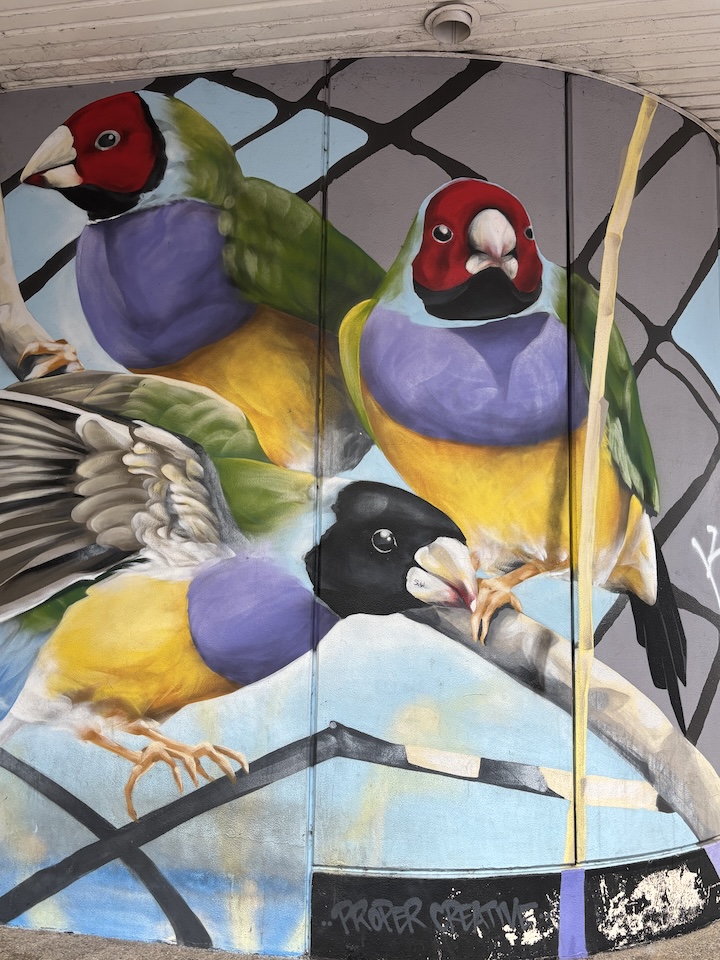 Kun sodan tuhoista oli selvitty, Darwiniin iski 1974 hurrikaani eli cyclone, nimeltään Tracey, tuhoten puolet taloista. Niinpä Darwinissa ei nykyään ole vanhoja rakennuksia. Kaupunki näyttää uudelta ja modernilta, siistiltä ja hyvin hoidetulta. Kaupunki-kierroksilla ihailimme komeita rakennuksia ja värikkäitä seinämaalauksia.