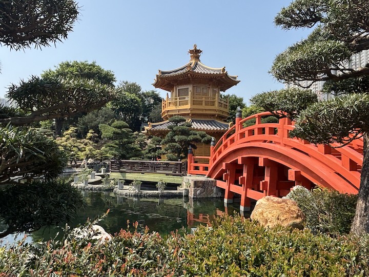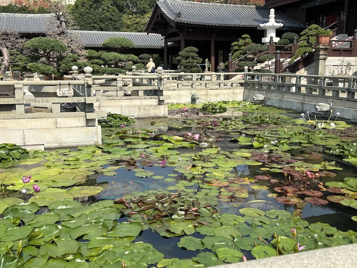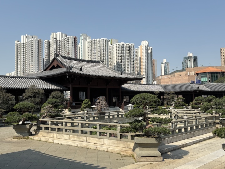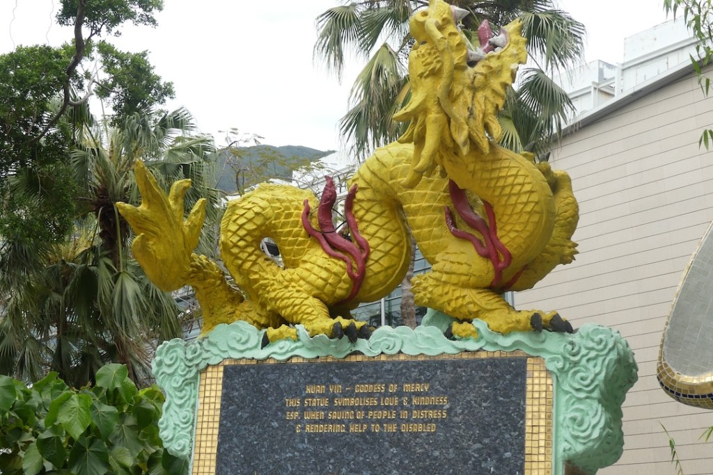 Toisen päivän aamuna nousimme bussiin Kowloonia kohti teemalla Hidden Treasures of Hong Kong. Hong Kong on yhtä vuorta ja laaksoa, ja siinä välissä nousua ja laskua, kuten kuvien kiemurteleva lohikäärme ikään. Pilvenpiirtäjien lomasta löytyi Chi Lin Nunnery, siis monastery eli luostari aidosti buddalaisittain, ja sen vierestä Nan Lin Gardens.