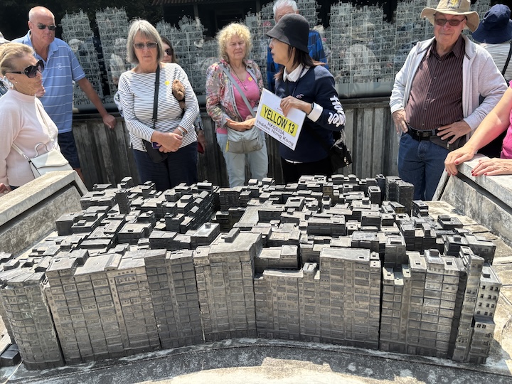 Edellisten vihreitten keitaitten jälkeen meille näytettiin tyypillinen 50-luvun kerrostalo, nykyään turistikohde ja museo. H-kirjaimen muodossa, kaksi taloa vierekkäin ja käytävä välissä, kerroksia reilusti yli 20, ei hissiä. Asunnot 10 neliömetriä. Vessat ja pesutilat käytävän päässä yhteiset. Keittotila kapealla parvekkeella. Kerrossänkyjä ja retkivuoteita. Kaikki huolehtivat kaikkien lapsista, joita oli paljon. Talon katolla toimi koulu, rooftop school. Niin kasvoi meidän ikäluokkamme, ja havaituksi tuli, että kerrossänkyineen ja pyykkilautoineen eivät ne olot paljon eronneet Suomen sodanaikaisesta ja -jälkeisistä olosuhteista, paitsi ihmismäärän suhteen.