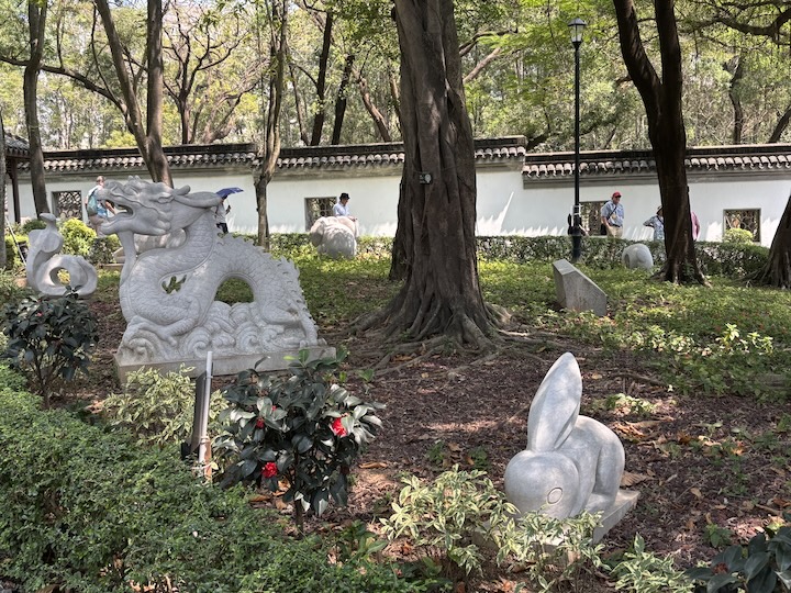 Seuraavassa laaksossa kohteenamme oli The Kowloon Walled City, Muurin tai paremminkin kiviaidan rajaama alue oli seinä seinään rakennettuja kerrostaloja, mutta nykyään aivan ihana puisto täynnä hauskoja yksityiskohtia. Kuvassa Chinese Zodiac, kiinalaiset horoskooppimerkit patsaina pitkin puistoa.