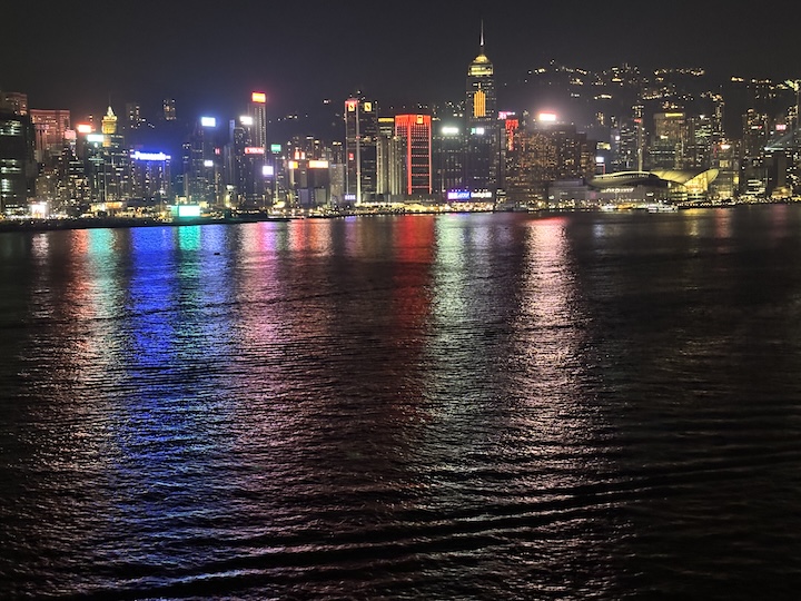 Toisen päivän iltana Queen Anne irtosi laiturista, vilkutimme hyvästit Queen Elizabethille ja kauniille Hong Kongille. Hong Kong iltavalaistuksessa oli upea Queen Annen pikkuhiljaa lipuessa Hong Kongin saaren ja Kowloonin niemen välistä. Edessä South China Sea ja kohteena Ho Chi Ming City, Vietnam.