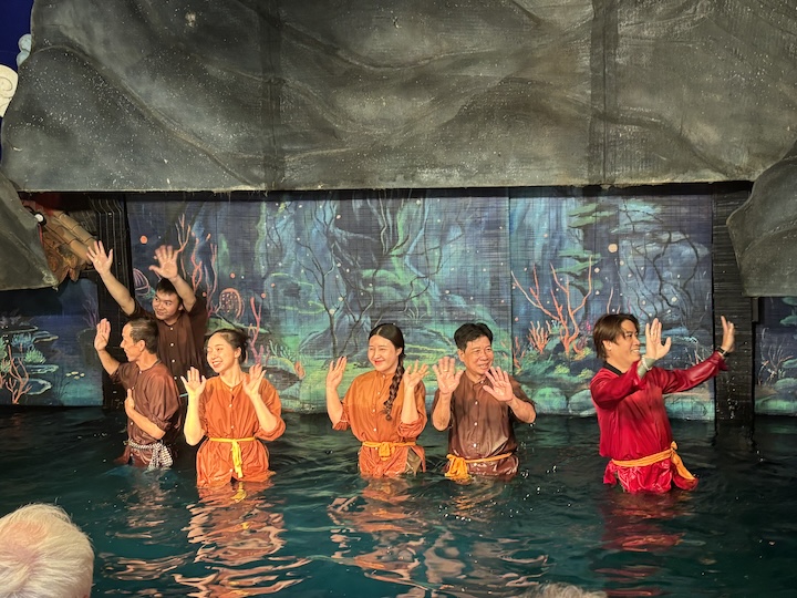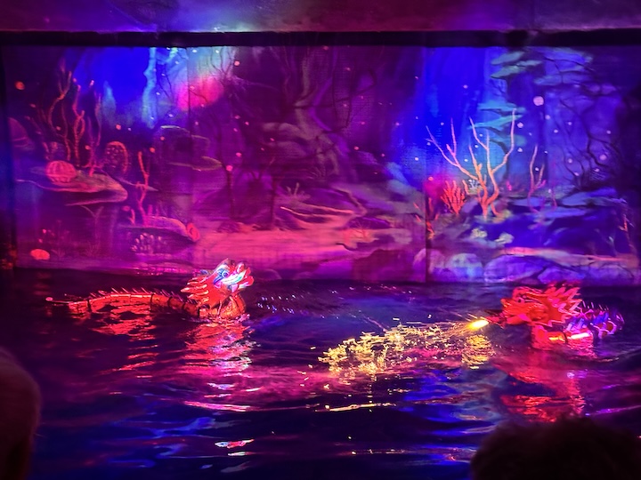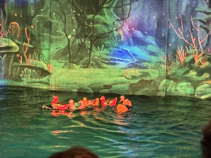 Ainutlaatuinen kokemus oli nukketeatteri, jossa ankat uiskentelivat, kalat polskivat, ja kalastaja perheineen yritti saada niitä haaviinsa. Nukkeja ohjailivat näyttelijät keppien kanssa verhon takaa. Samassa rakennuksessa sijaitsi komea museo, jonka mielenkiintoisiin näyttelyihin meille annettiin kokonaista kaksi minuuttia huonetta kohti.
