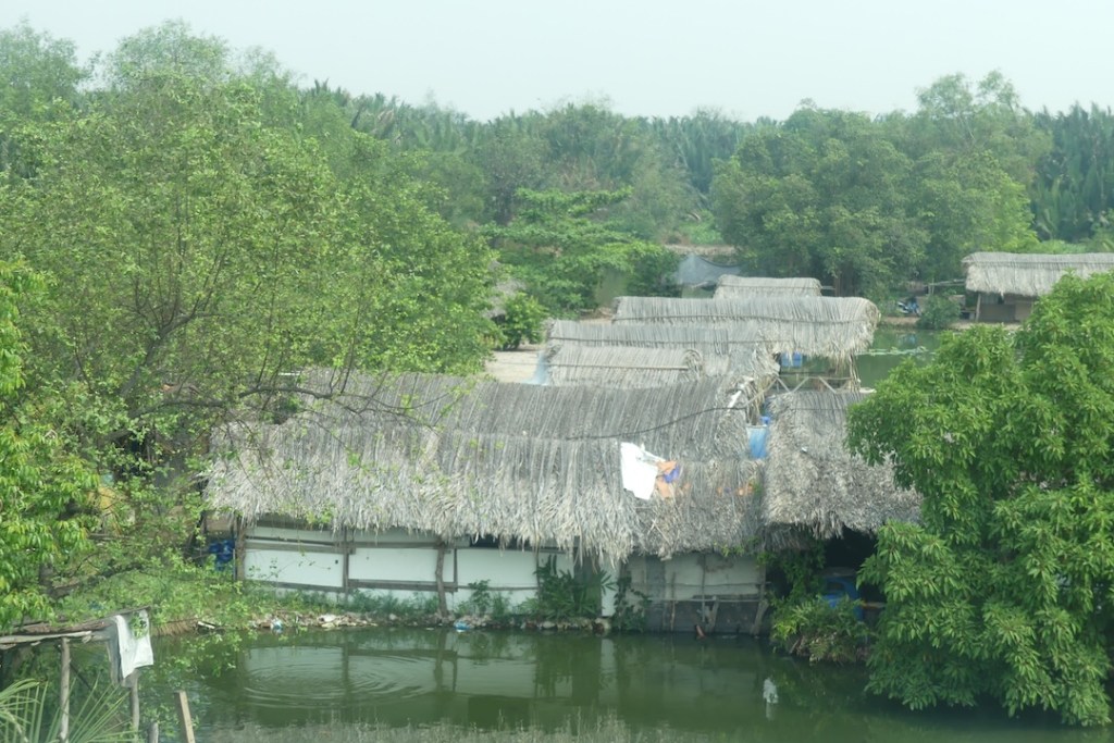 Tarjolla oli retkiä joelle ja maaseudulle, mutta halusimme kokea Saigonin kaupungin. Pitkällä ajomatkalla tähyilimme näkymiä tien varrella, riisipeltoja ja kalankasvatusta.