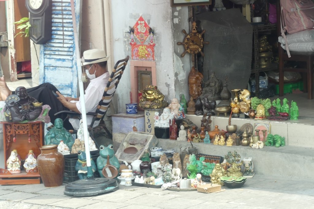 Jonkunmoisen ruuhkan jälkeen olimme suurkaupungin kaduilla, korkeitten rakennusten keskellä. Tien Hau temppeli on omistettu meren jumalalle, jonka kerrotaan matkaavan matolla merien yli.
