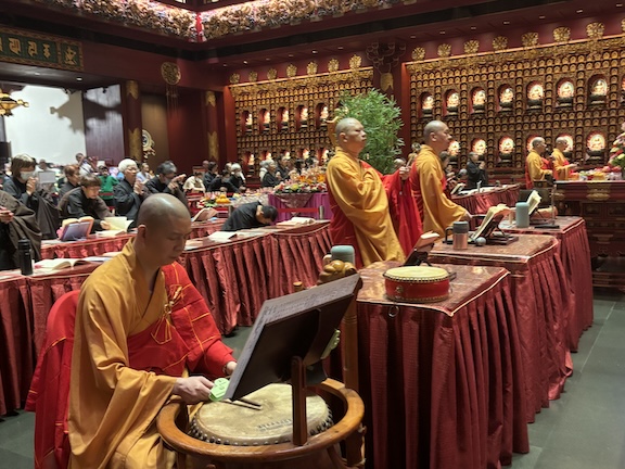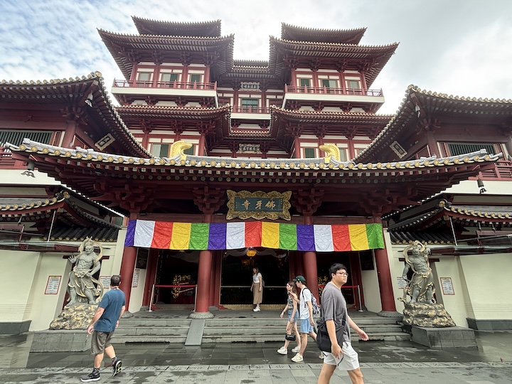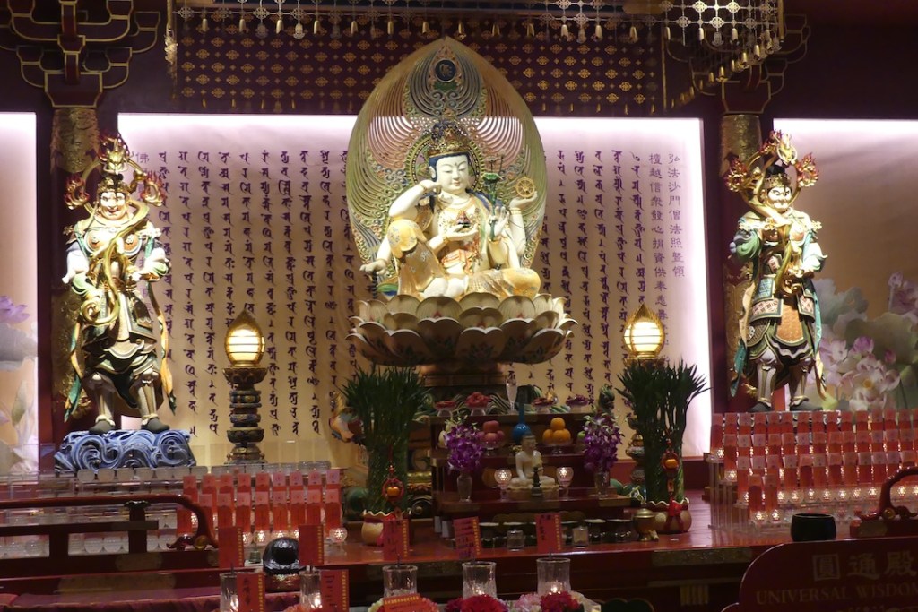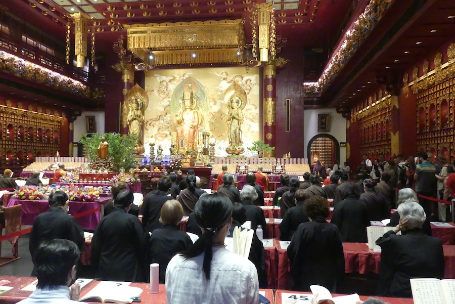 Oppaamme kertoi, että Singaporessa kaikki rodut ja kaikki uskonnot elävät sovussa vierekkäin. Kuljimme ensin valtavan upean Buddalaisen temppelin läpi, jossa oli seremonia menossa.