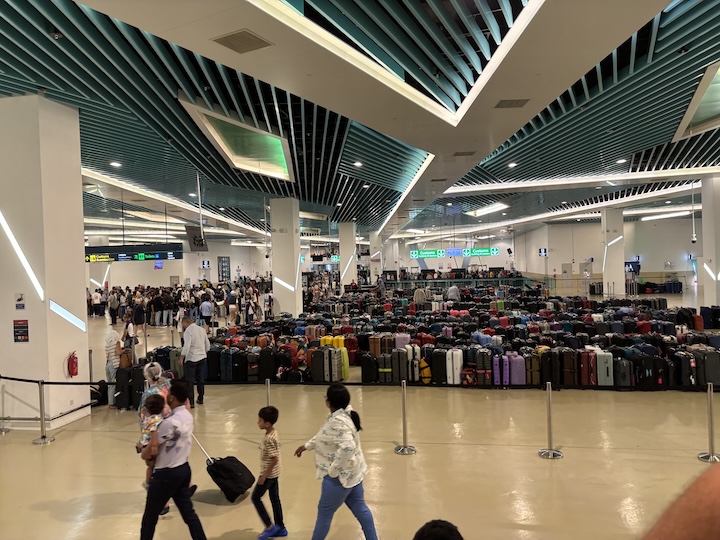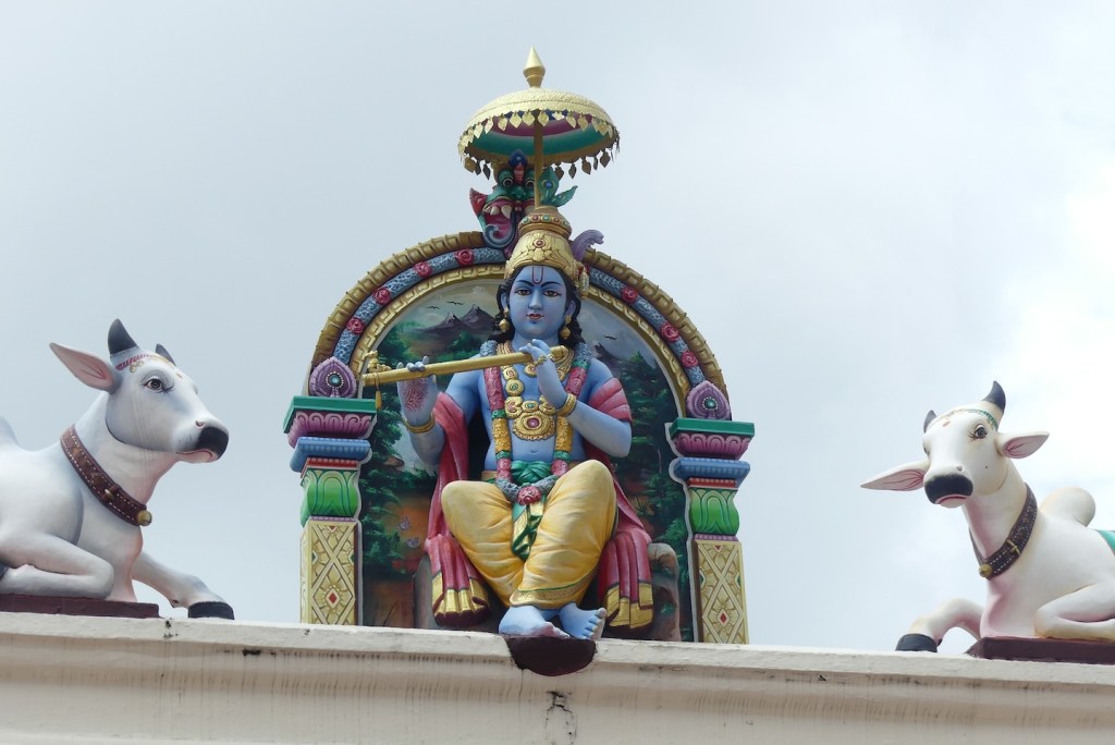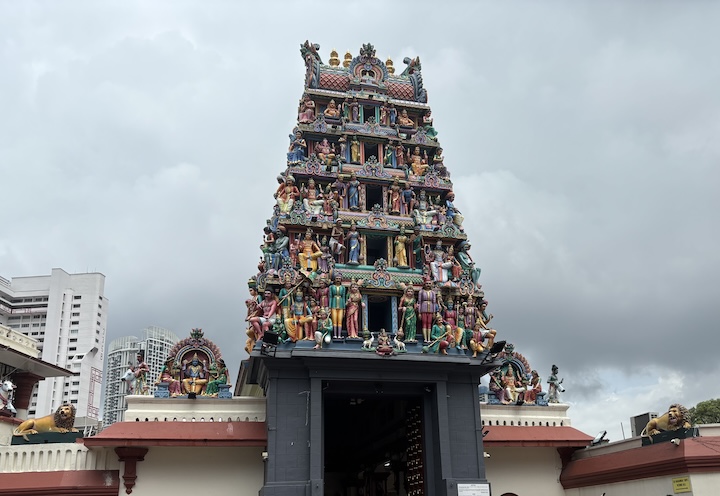 Hindutemppelin komeaa tornia ja mahtavia patsaita ihailimme kadulta käsin. Viereisessä korttelissa sijaitsi kristittyjen kirkkoja.