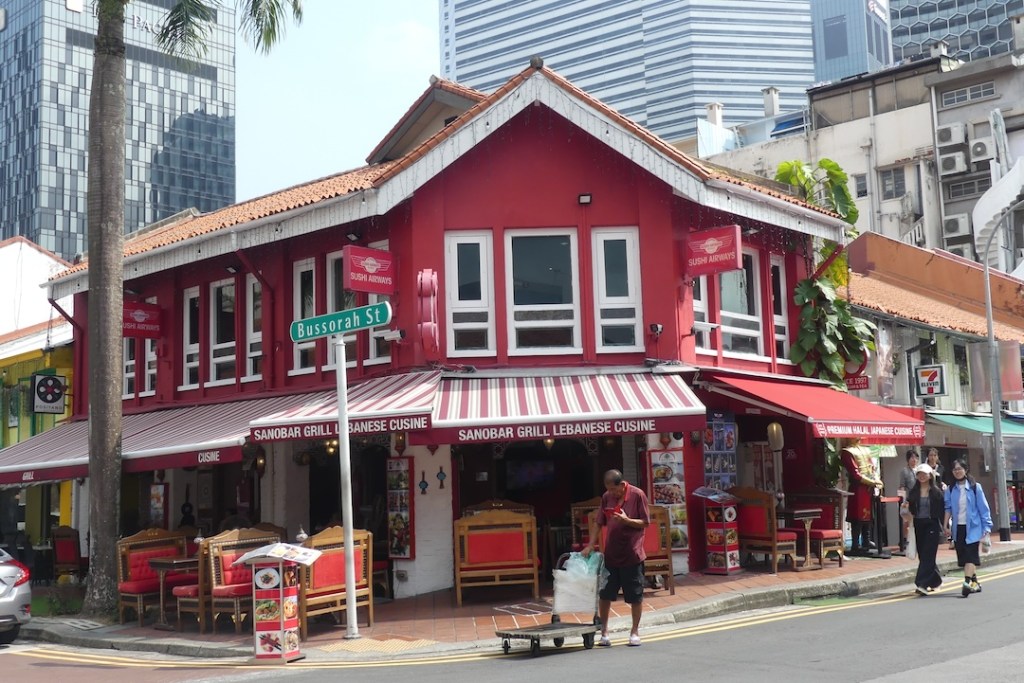 Opas teki hyvää työtä pitäessään 35-henkisen ryhmämme kasassa puikkelehtiessamme pitkin katuja ja kujia. Minareetin tornit ja muslimien temppeli sekä kauppoja ja ravintoloita, myös valtava mattokauppa löytyi turkkilaiselta alueelta. Pikku Intian basaarit reunustivat toisia katuja. Edelleen taidokkaat maalaukset peittivät rakennusten seinät. Lebanonilaisen ravintolan edustalla tuli tarjoilijapoika jutustelemaan, ja väitti jopa tietävänsä Suomen, jne. Ja edelleen kaikkialla vallitsi uskomaton siisteys ja järjestys.