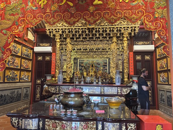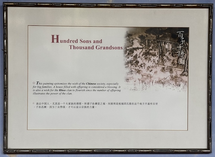 Seuraava kohde oli Chinese clan house Khoo Kongsi, komea temppeli, jonka sivuhuoneet olivat olleet klaanin kotina aikoinaan. Rakennus oli upeasti koristeltu kaikenlaisilla ornamenteilla sekä ulkoa että sisältä. Suuri perhe oli siunaus. Viisaat miehet johtivat klaania.