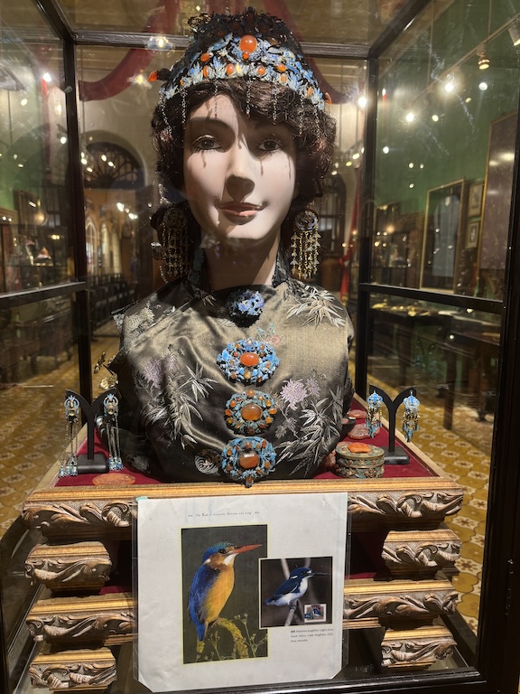 Erään käsityöläisen elämäntyönä olivat linnun sinisistä sulista saadulla materiaalilla koristetut korut. Norsunluuhun kaiverrettu lintuparvi oli vain noin 5 cm leveä, taidokasta tarkkaa työtä. Onnellinen kauppamies, kukkulan kuningas.