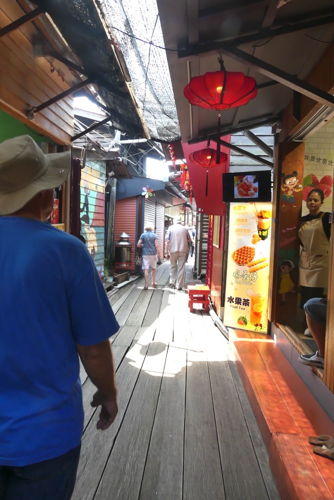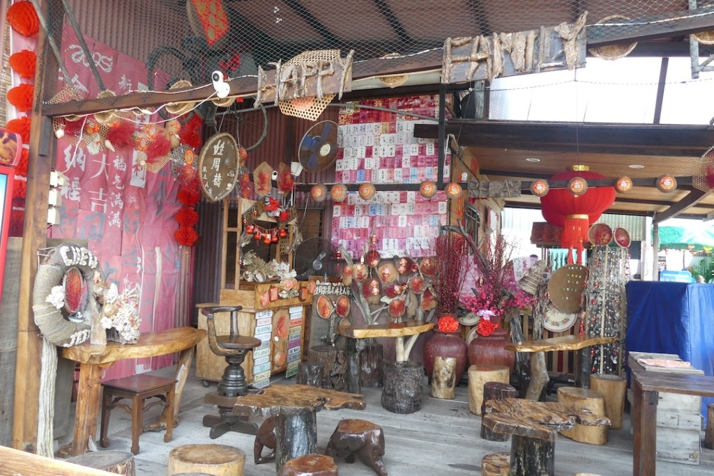 Me jatkoimme matkaa laitureilla sijaitsevaan kauppakujaan. Pitkospuita myöten loikimme laiturin päähän saakka, ja samaa tietä takaisin. Jälleen tarjolla oli kaikkea kaunista ja perinteistä.