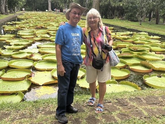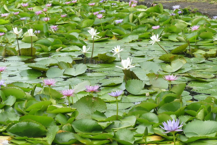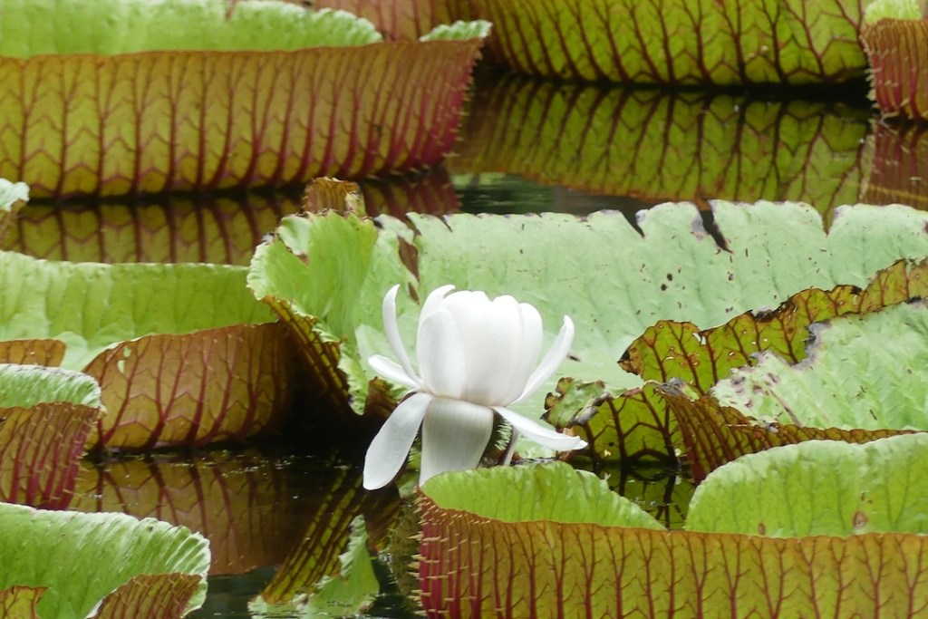 Kävimme ihanilemassa monenlaisia lumpeita, pinkkiä ja valkoista lootusta, ja paikan erikoisuus oli laaja allas, jossa kasvatettiin jättimäisiä Amazonin vesililjoja. Altaan pinta oli kokonaan kelluvien lehtien peitossa. Halkaisijaltaan noin metrin mittaisten lehtien välistä pisti esille kauniita valkoisia kukkia. Muistelimme haikeudessa, miten kaksi vuotta sitten ajelimme Amazon joella pienellä moottoriveneellä noitten vesikasvien joukossa.