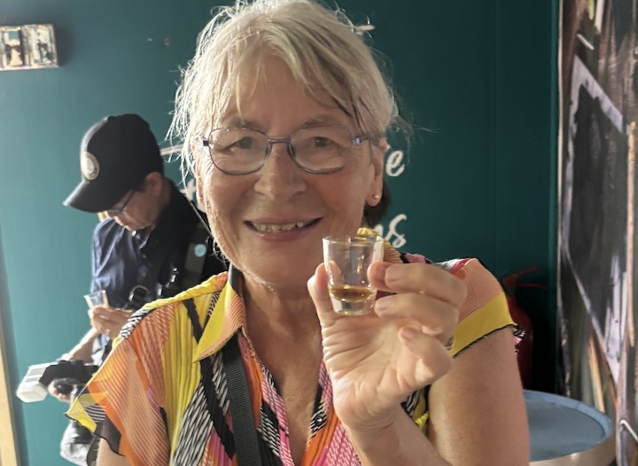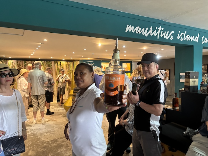 Tee, sokeri, vanilja ja rommi ovat olleet tärkeimmät myynti- ja vientituotteet. Yllä maistelimme eri ikäisiä rommeja, ehkä 1 ml kutakin. Sokeriruokoa viljellään edelleen. Ajelimme laajojen sokeruokoviljelmien lomitse kiemurtelevia teitä myöten. Nykyaika on vielä lisännyt liikenneympyrät, joten mutkaa riittää. Bussimme kuljettaja osasi asiansa, eikä tuntunut mitenkään stressaantuvan aika mahdottoman näköisestä liikenteestä.