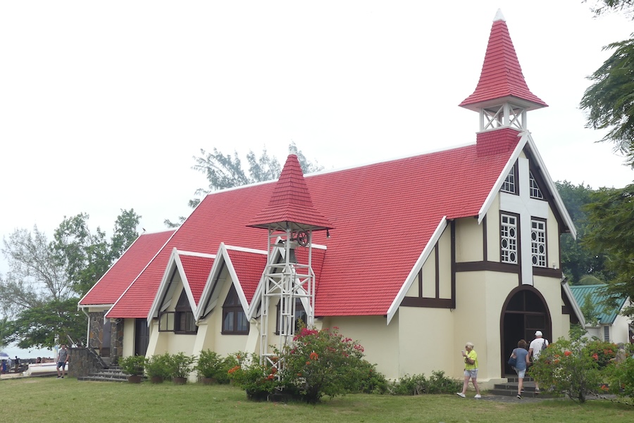 Saaren pohjoisosassa teitten varsilla oli valtava määrä puolivalmiita rakennuksia, betoniharkoista muurattuja tai valettuja. Yhden miehen näin seisovan yhden seinän päällä. Näytti, että rakennustyöt ovat katkolla, mitä lienee onkaan ongelma. Ajelimme paikkaan nimeltä Cap Malheureux saaren pohjoiskärjessä ja pysähdyimme ihailemaan kaunista punakattoista kirkkoa, Notre Damen pääkirkkoon kuuluvaa, ja sen vieressä upeaa hiekkarantaa. Vähän matkan päässä merellä näkyivät viisi muuta Mauritiukselle kuuluvaa pientä saarta. Tässä kauniissa kylässä olisimme viihtyneet enemmän kuin meille suodut 15 minuuttia. Ajomatkalla ohitimme muutaman mahtavan hindu-temppelin, joita emme pysähtyneet ihailemaan.
