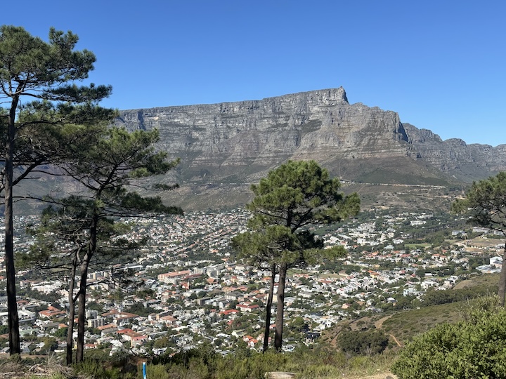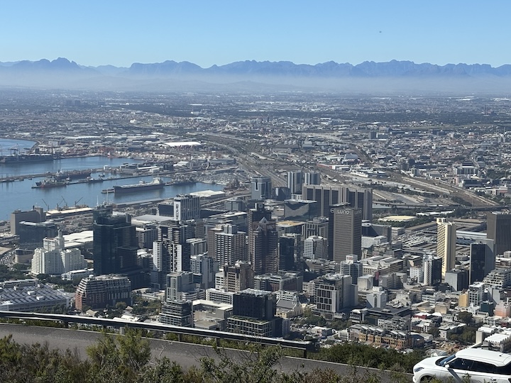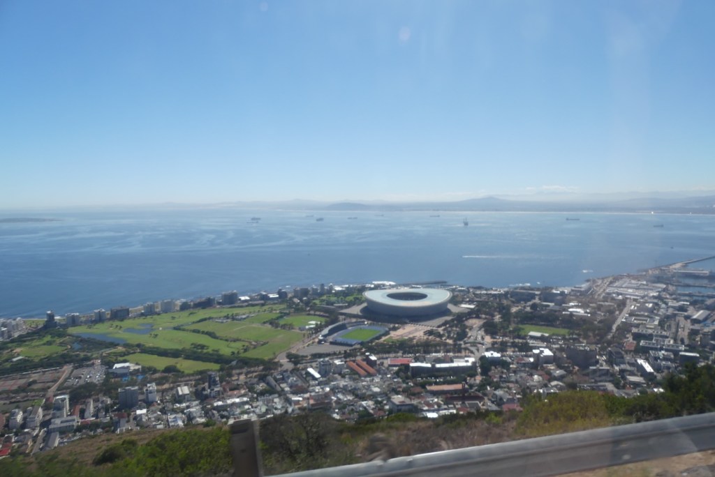 Cape Town on varsin mäkistä maastoa, kuuluisimmat vuoret, Table Mountain, Devils Peak ja Signal Hill nousevat yli kilometrin korkeuteen. Bussimme yski ja sammui mäkilähdöissä, mutta lopulta vei meidät Signal Hillin laelle.