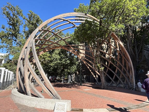 Käytävä johti South African Museoon, jonka edessä ihmettelimme tuhansista kepeistä koostuvaa muistoaluetta, pystytetty kaikkien maansa puolesta kuolleitten muistolle, rodusta ja uskonnosta riippumatta. Puiston reunalla sijaitsi alue, jossa aikoinaan orjat saivat kokoontua kerran viikossa, kertoi opas.