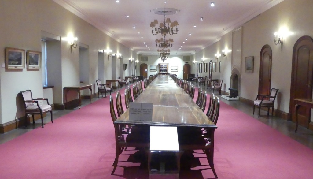 Pääoven edessä seisovat Etelä-Afrikan historiassa tärkeitä henkilöitä esittävät patsaat, nimet ja tarinat löytyvät netistä googlaamalla. Puun alla linnan pihassa seisoi koululuokka ja kuunteli opettajan esitystä koko sen ajan kun mekin siellä olimme, urheat lapset! Linnan sisältä löytyy ruokapöytä ainakin 100:lle hengelle.
