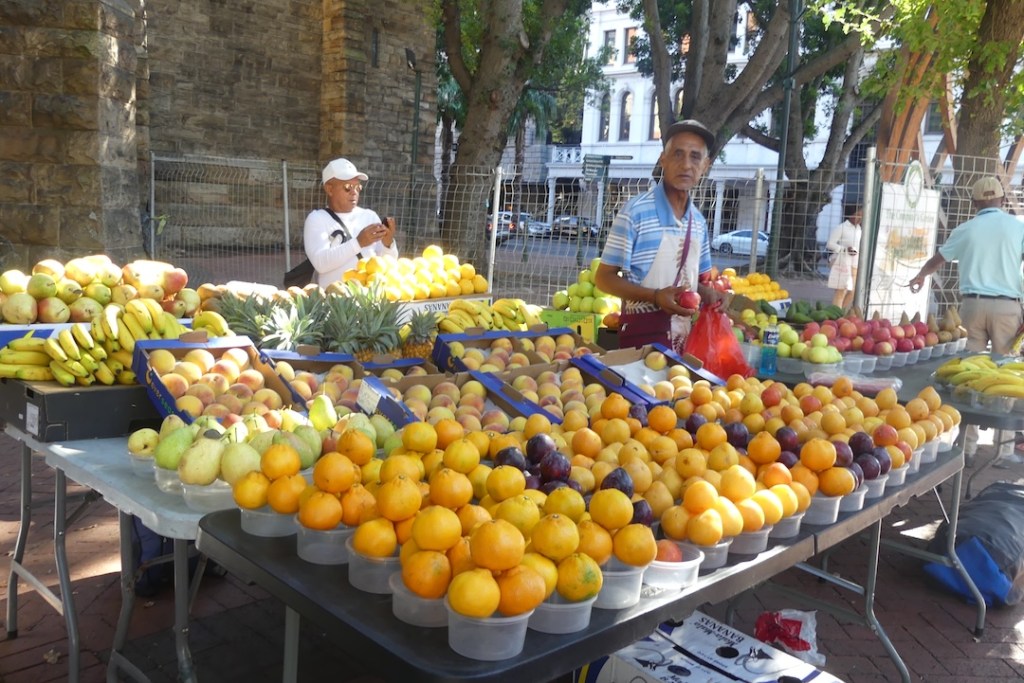 Teimme pitkän kävelykierroksen puistoon, The Company Gardens, joka alunperin oli perustettu vihannesten viljelyyn. Monenlaista myyntipöytää oli matkan varrella. Puiston puut olivat jättikokoisia. Täällä ei vanhoja puita kaadeta.