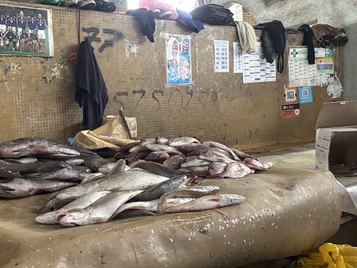 Opas meni kovaa kyytiä ja kymmenkunta meistä unohtui kuvaamaan kaloja, rapuja ja hedelmiä.