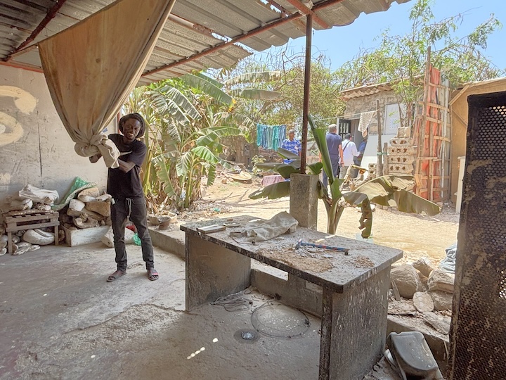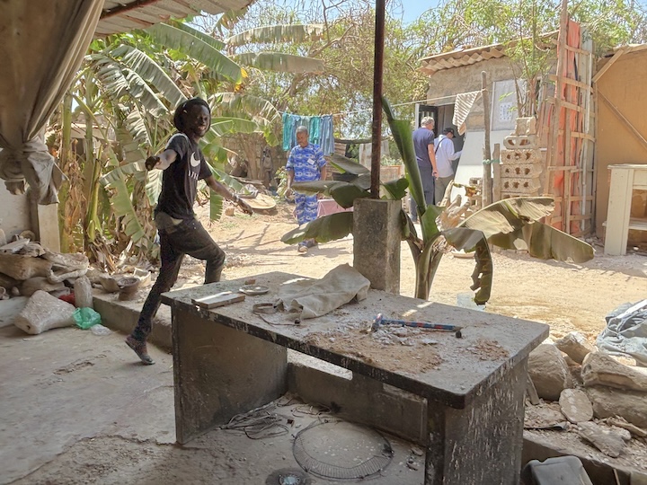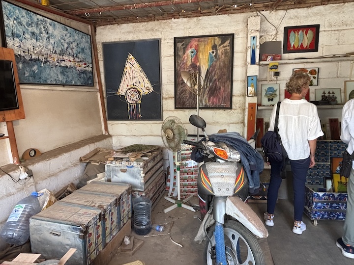 Millainen mielikuva mahtaa olla itse kullakin, kun kerrotaan, että nyt menemme tutustumaan taidegalleriaan ja taiteilijoiden työpajoihin? Kokonainen kortteli oli täynnä pitkiä rakennuksia, kujat välissä, osa suhteellisen siistejä, osa täynnä romua. Eikö se ollut niin, että yhden romu on toisen aarre. Kun rahaa ei ole ollut kalliisiin materiaaleihin, taiteilijat käyttävät kaikkea hylättyä, kankaita, metallia, autonrenkaita ja ennen kaikkea hiekkaa, kertoi oppaamme.