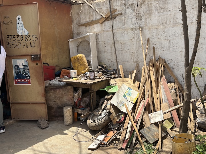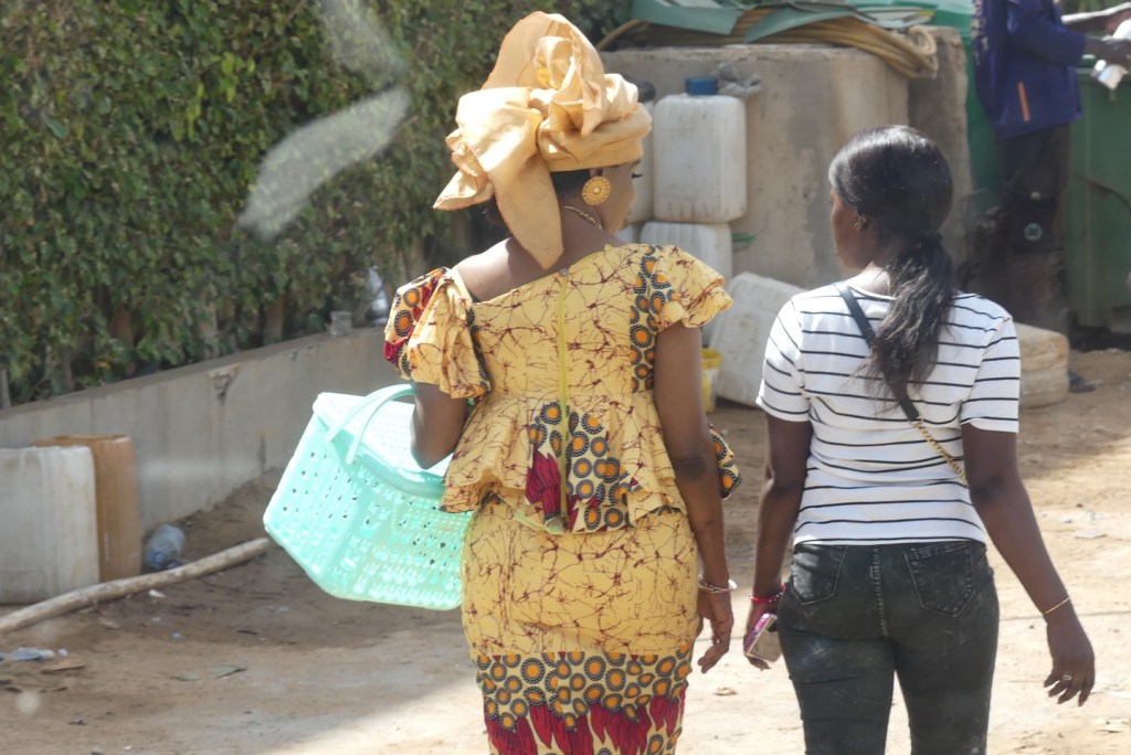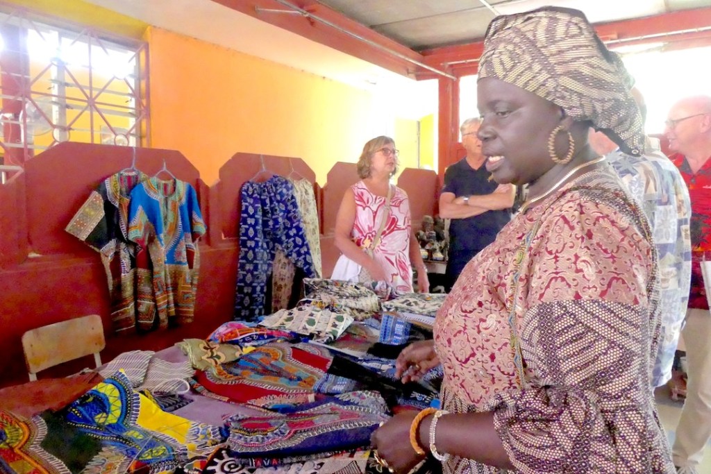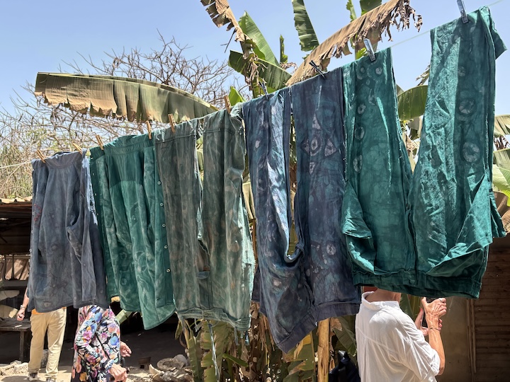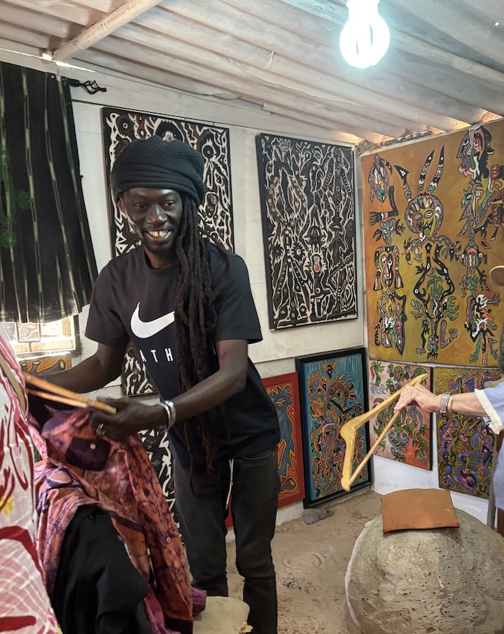 Pihan perälle meidät houkutteli nuori mies, joka esitteli kasviväreillä värjäämiään kankaita ja vaatteita. Pihalla pyykkinarulla roikkui värjättyjä farkkuja, ja takakulmassa savusi nuotio. Laihoja kissoja vilahteli kaikkialla kompastumisvaaraan asti. Ryhmämme osti tauluja ja paitoja, mekkoja ja muuta, aitoa afrikkalaista. Ja tietenkin kameran muistiin tallennettiin tuhansia kuvia.